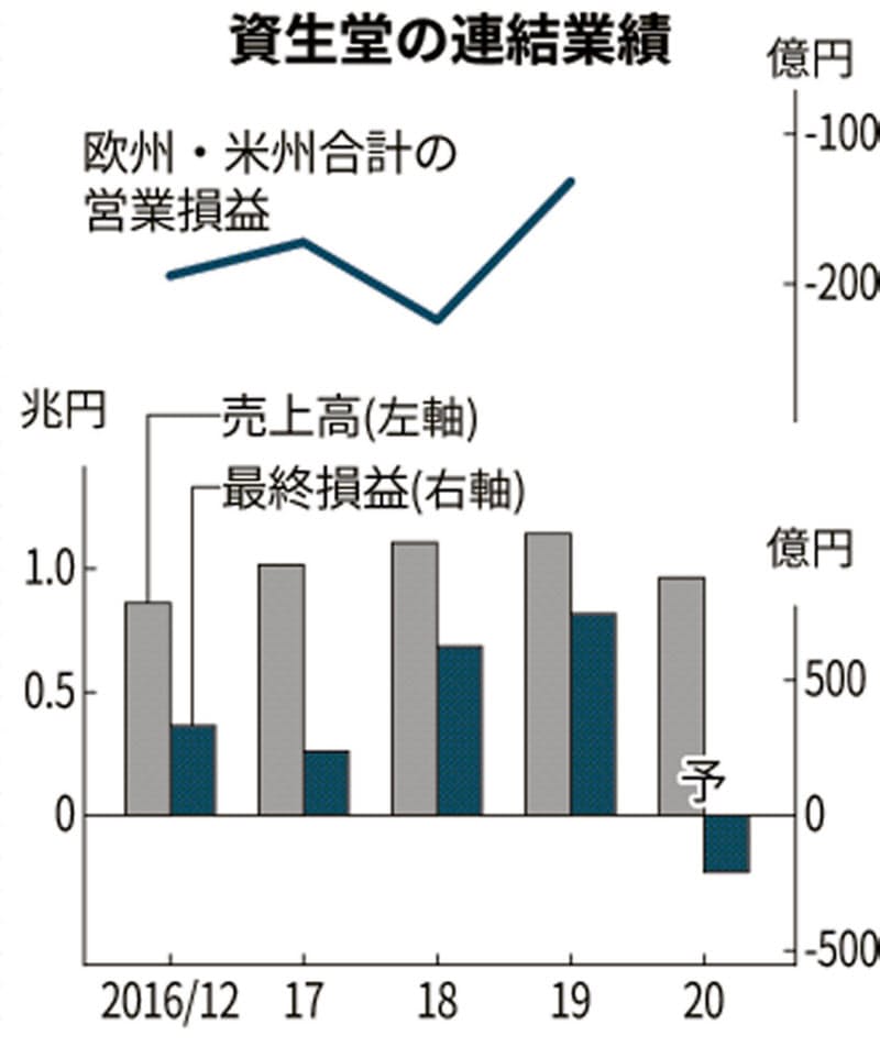 資生堂の最終赤字2億円 12月期 化粧品落ち込む 日本経済新聞